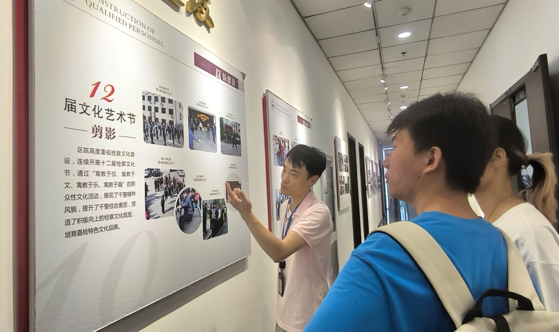 图为嘉定区检察院干警介绍院史馆展板。赵一霖 供图