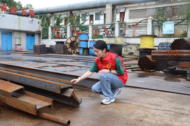 参观完室内仓库,实践队成员跟随工作人员来到室外物资堆放区,这里藏着另一个“低碳秘密”——完善的钢材余料回收与再利用机制。“配送过程中产生的边角料、废料,我们都会分类回收、集中加工,让它们重新回到生产线上。” 工作人员指着正在处理的余料解释道。这一看似简单的操作,背后是实实在在的减排成效:通过余料回收,不仅提高了资源利用率,更减少了新钢材生产过程中的能源消耗与碳排放,实现了“变废为宝”的循环价值。看着眼前“储备精准,服务至上”的生产标语,实践队成员深刻理解到“低碳转型”不仅需要宏大的产业布局,更离不开每个生产环节的精细把控。
