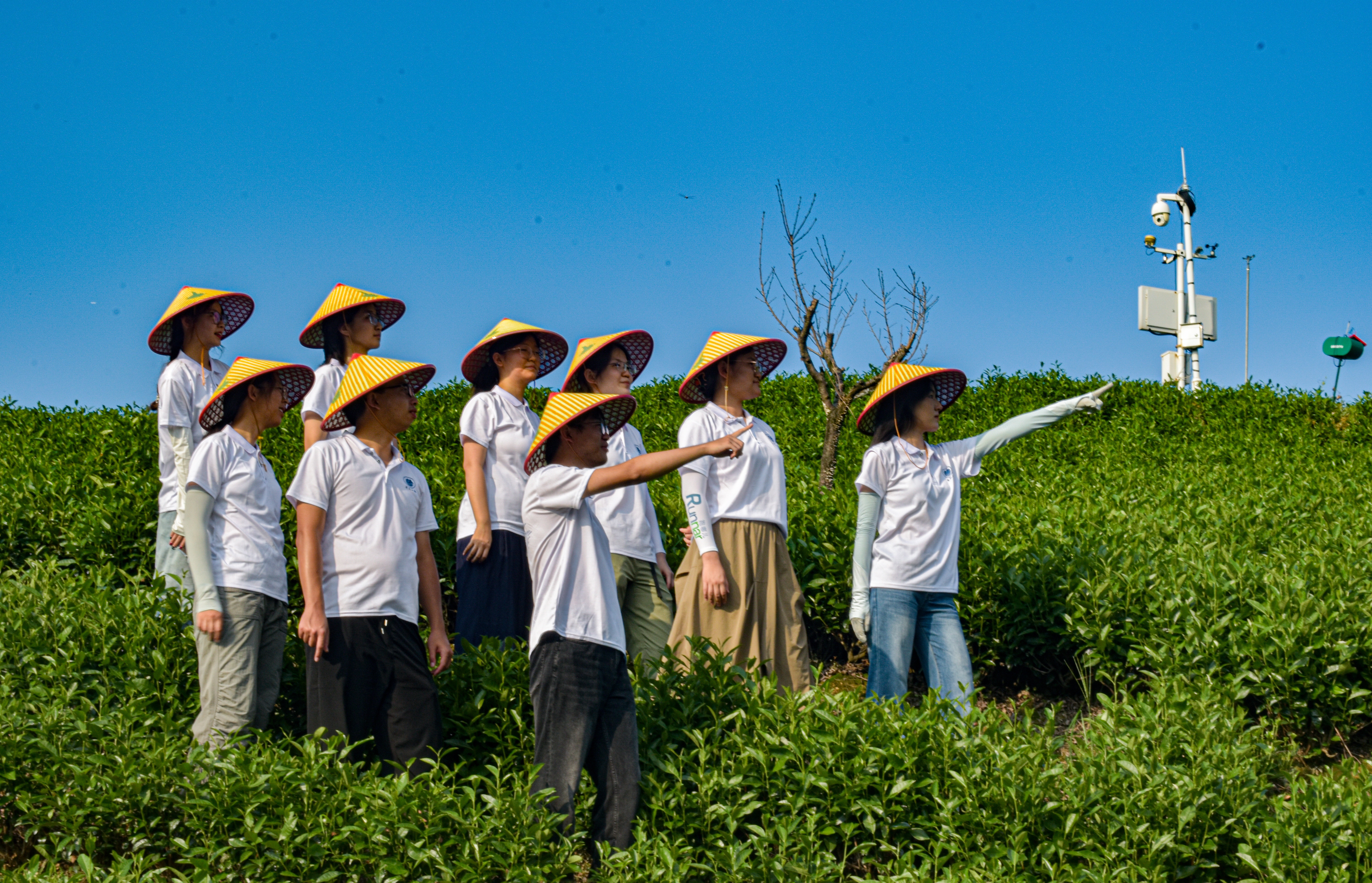 “安吉白茶主脉翠绿,叶片白化度较高,氨基酸含量比普通绿茶高了3-4倍,这些特质离不开安吉独特的自然地理环境,更离不开安吉的绿色生态建设。”安吉盈元家庭农场主理人朱冰倩介绍道。盛夏的安吉,一亩亩茶垄如绿浪翻涌,氤氲着千年茶香与时代新韵。2025年8月3日至8月5日,天津大学“奔赴山海”实践队先后走访盈元茶庄与“绿水青山就是金山银山”理念诞生地——浙江湖州安吉余村,秉持实事求是的校训,致力于为安吉承茶韵、融文旅、创未来贡献青春力量。