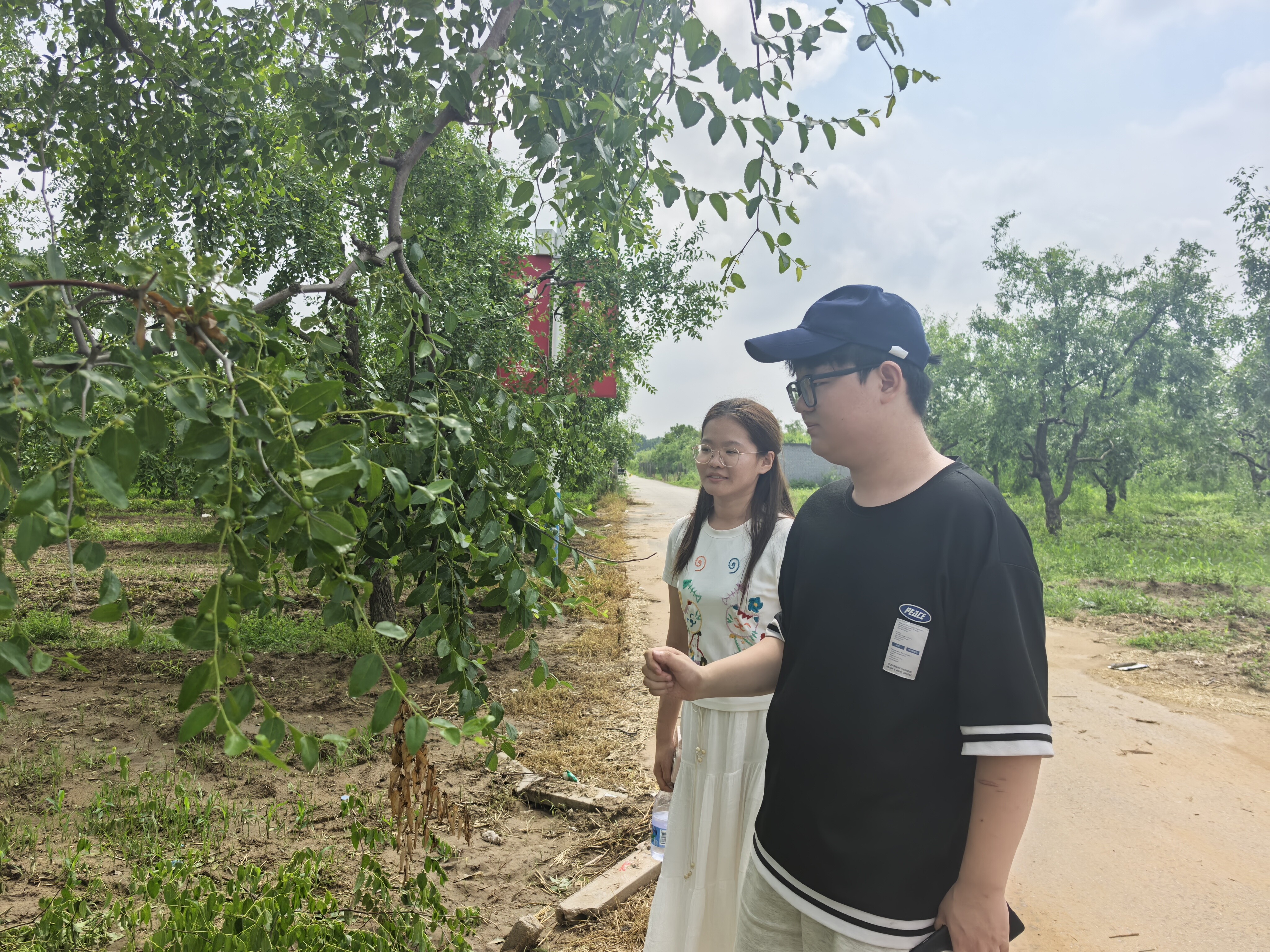 实践队首站走进枣田公社的核心种植区。连片的枣林郁郁葱葱,现代化的田间管理设施有序分布。队员们通过与公社负责人的交流,详细了解了基地的规模化种植模式、生态种植理念及产业链延伸情况,对“合作社+基地+农户”的运作机制有了清晰认识。田间地头的实地考察,让大家看到科技如何赋能传统农业,如何通过标准化、集约化种植推动农产品提质增效,助力农民增收致富。从半封闭式避雨大棚防治枣树溃疡病到土壤墒情检测,从无人机施药到移动终端的浇水量控制,科技真正走进农民的生活,智慧农业真正在田间建立。通过科技赋能,茌平枣田公社不仅提高了圆铃大枣的产量和品质,还推动了当地农业的可持续发展,为农民带来了实实在在的经济效益。枣田公社的成功经验也为其他地区的农业现代化提供了有益的借鉴。