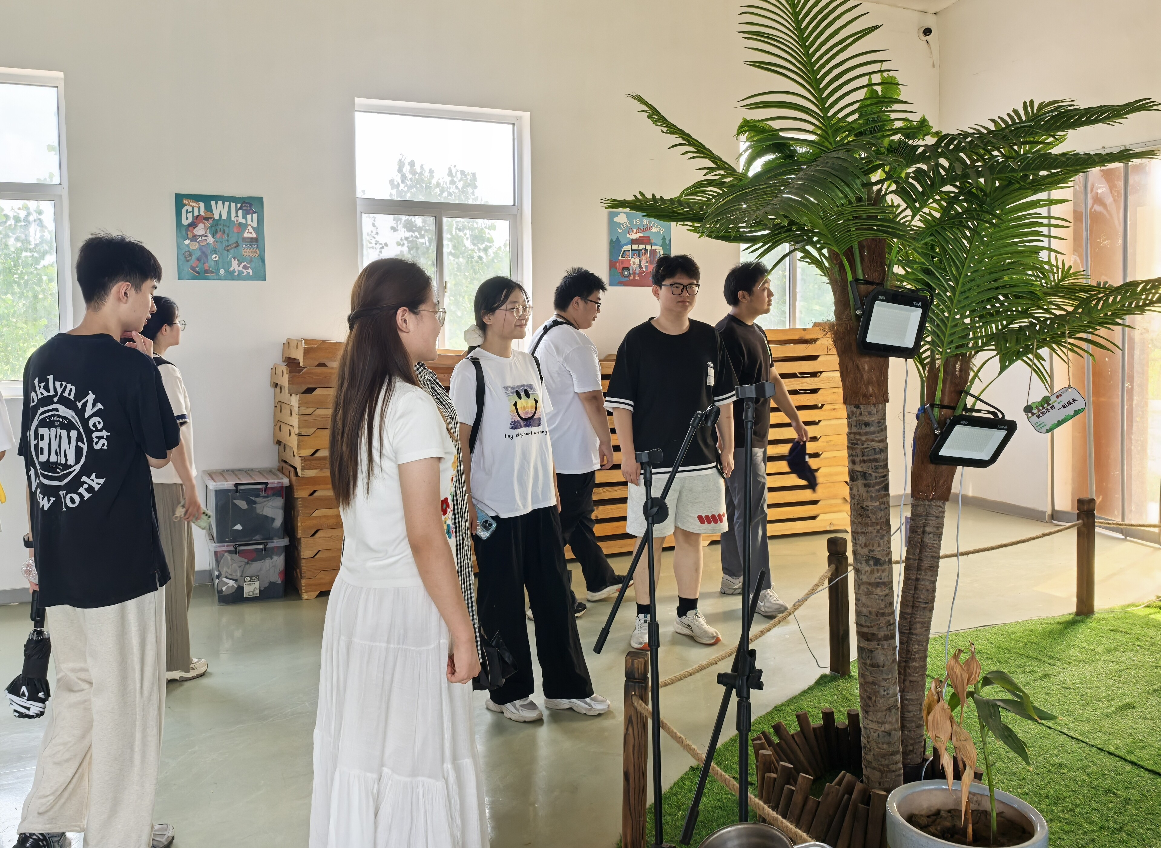 经公社负责人介绍,园区共580亩,除种植区外,还包含研学基地、瓦尔登田园野奢营地和家庭农场等区域,以此为依托深耕产业融合发展路径,以“时间差”为杠杆撬动多元价值:产枣季聚焦核心单品,依托全产业链优势打响大枣品牌;非产季则巧借生态环境与农耕文化资源,推出沉浸式研学体验与家庭郊游娱乐活动,让闲置期变为消费新场景培育期。实践队员深入园区,于瓦尔登野奢营地体验自然与人文的交融,进行射箭、野营等活动;在家庭农场观察蔬菜瓜果生长状态,亲手栽种作物。通过亲身经历体悟“农旅+”的产业模式如何让土地焕发生机,将“生产、生活、生态”三位一体化。