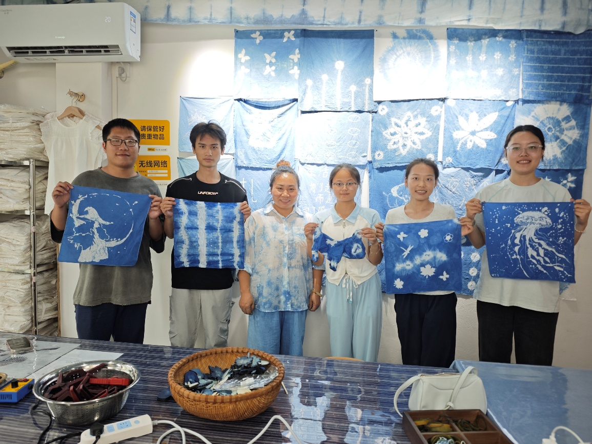 下午,实践队来到非遗工坊亲身体验扎染、蜡染等传统手工艺制作过程。在负责人的介绍下,队员们学习了传统草本扎染和蜡染的基本工序,并在亲手实践中领悟“工匠精神”的真谛。实践队王同学表示:“这次体验是一堂生动的文化课,让我们深刻认识到守护与传承好这份宝贵财富,是青年一代义不容辞的责任。”