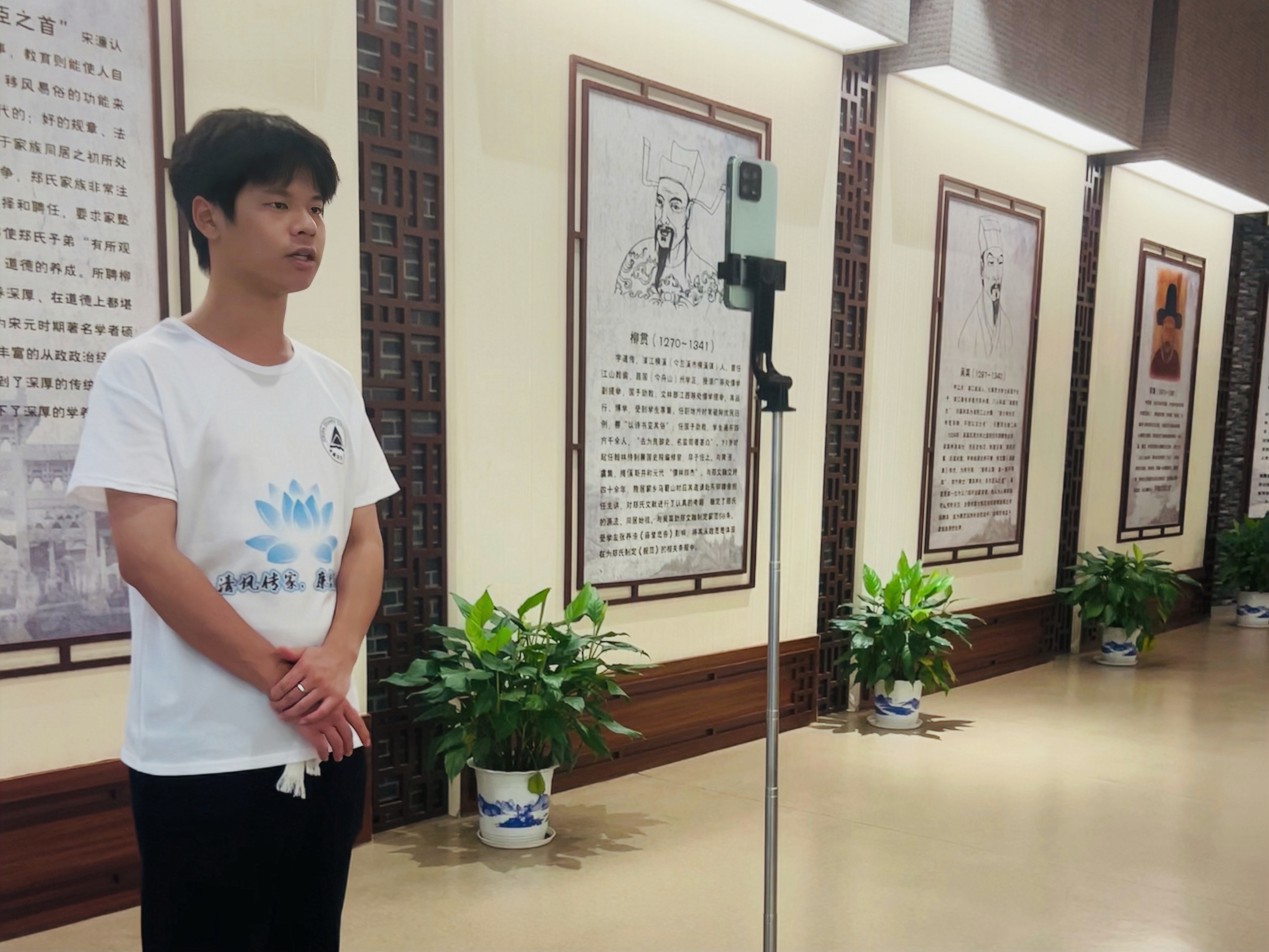 7月6日,实践队在郑义门廉政教育馆内进行了一项创新实践——录制以郑氏廉洁家风为主题的思政微课视频。这不仅是实践成果的转化,也是队员们自身深化理解和传播文化的过程。