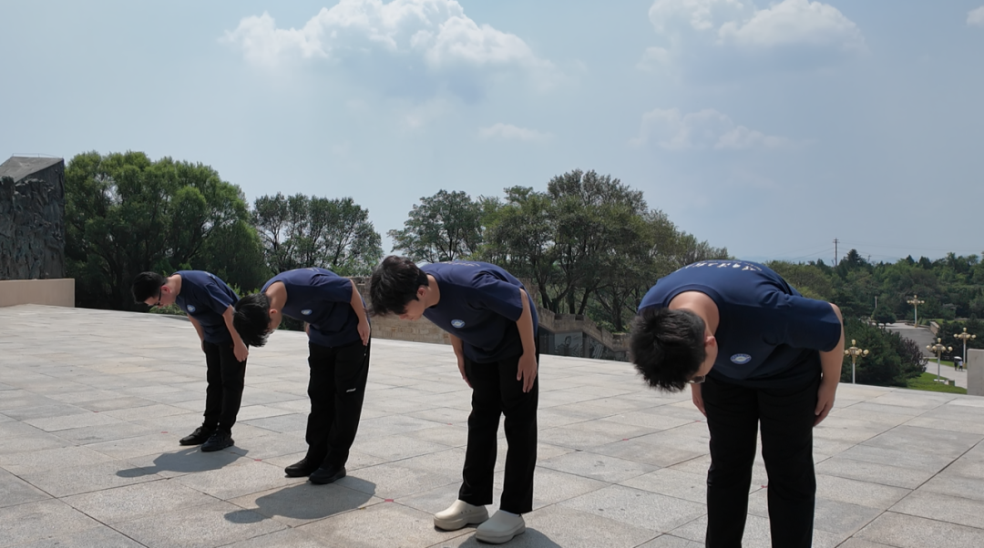 步入百团大战纪念馆,巨大的战役沙盘再现了八路军破袭正太铁路的雷霆之势。队员们凝视着彭德怀元帅的塑像,在讲解员的带领下,仿佛听到了当年震天的号角。实践队全体成员庄重地列队于纪念馆门口镌刻着历史丰功的石碑前,怀着无比崇敬的心情,深深三鞠躬。这无声的仪式,是对先烈最深切的缅怀,也是青年一代铭记历史、担当使命的无声誓言。