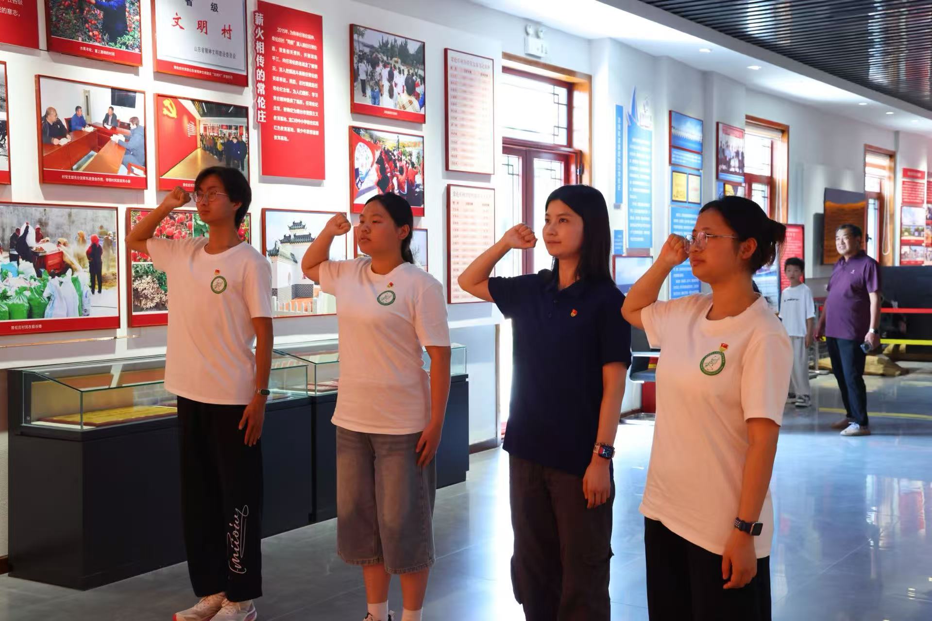 随后,在入党誓词前,实践团中的党员同志们高举右拳,重温入党誓词。铿锵有力的誓言回荡在展览馆上空,不仅是对革命先烈的深切缅怀,更是对初心使命的坚定承诺。