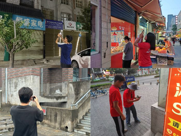 “我们正在拍摄外墙照片,这些数据能帮着早点发现瓷砖脱落的风险。”7月22日上午,西安市莲湖区北院门历史文化街区,实践团成员权奕举着相机对准一栋老式居民楼的外墙。此时,团队另外三组成员正分别在周至县老城区、宝鸡市商业圈和该校草堂校区同步开展工作,他们的目标是在三天内收集到覆盖不同场景的建筑外墙图像。为确保数据的多样性与全面性,团队在选址上颇费心思:莲湖区的老旧小区多为上世纪八九十年代建筑,外墙瓷砖风化、空鼓问题具有代表性;周至县部分居民楼因地理位置特殊,常年受潮湿气候影响,瓷砖脱落风险较高;宝鸡市的商业楼宇涵盖了玻璃幕墙、石材、瓷砖等多种外墙材质,能丰富数据维度;而草堂校区的教学楼则为团队提供了较新建筑的外墙样本。