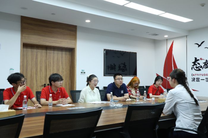图为实践队员与中建西安幸福林带建设投资有限公司工作人员座谈交流
