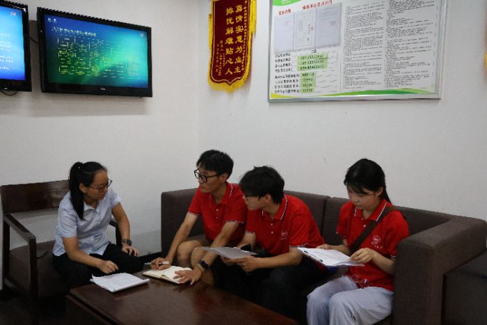 图为实践队员与万科·城市之光物业工作人员座谈交流