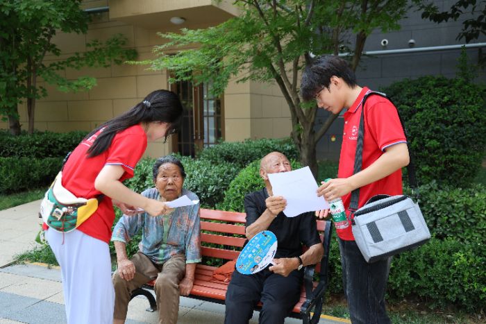 图为实践队员在太乙城社区进行居民实地问卷调研