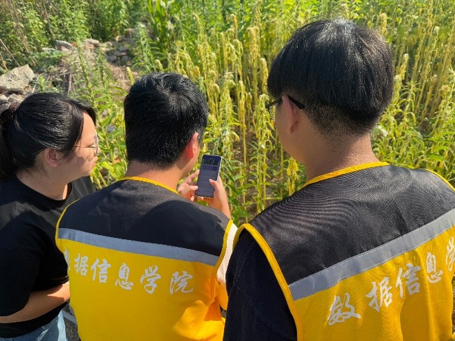 图为队员们用“星河识农”APP为村民识别田间杂草 刘嘉祺 供图