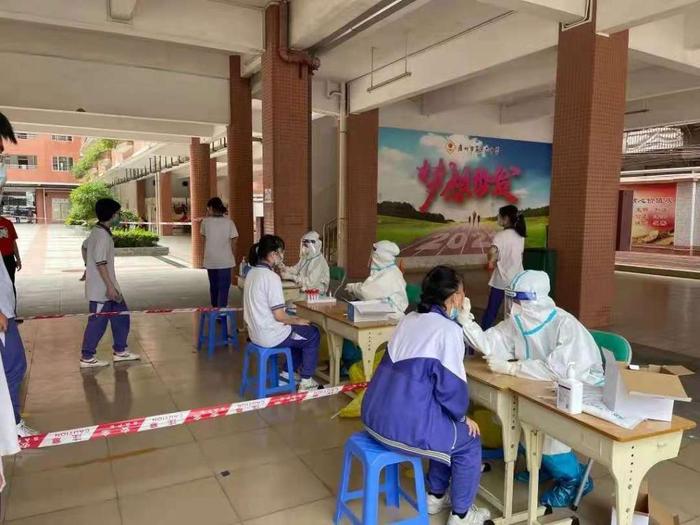 广州市第十六中学高三学生在做第2轮核酸检测。