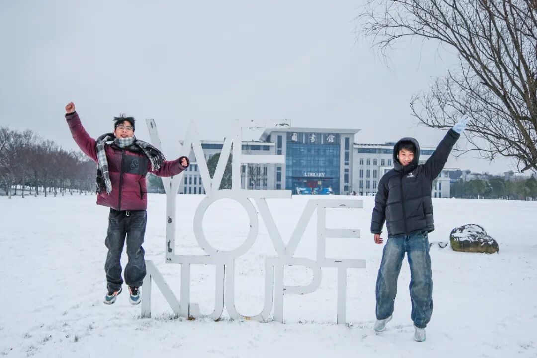 寒冬启春,有雪有情!南邮的第二场雪,踩着节气的节拍如约而至