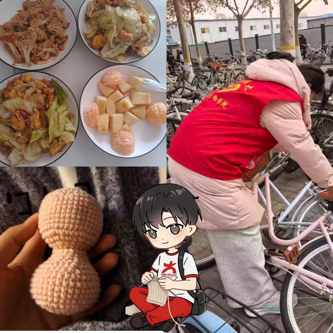小中和同学解锁钩织、做菜技能,参加志愿活动