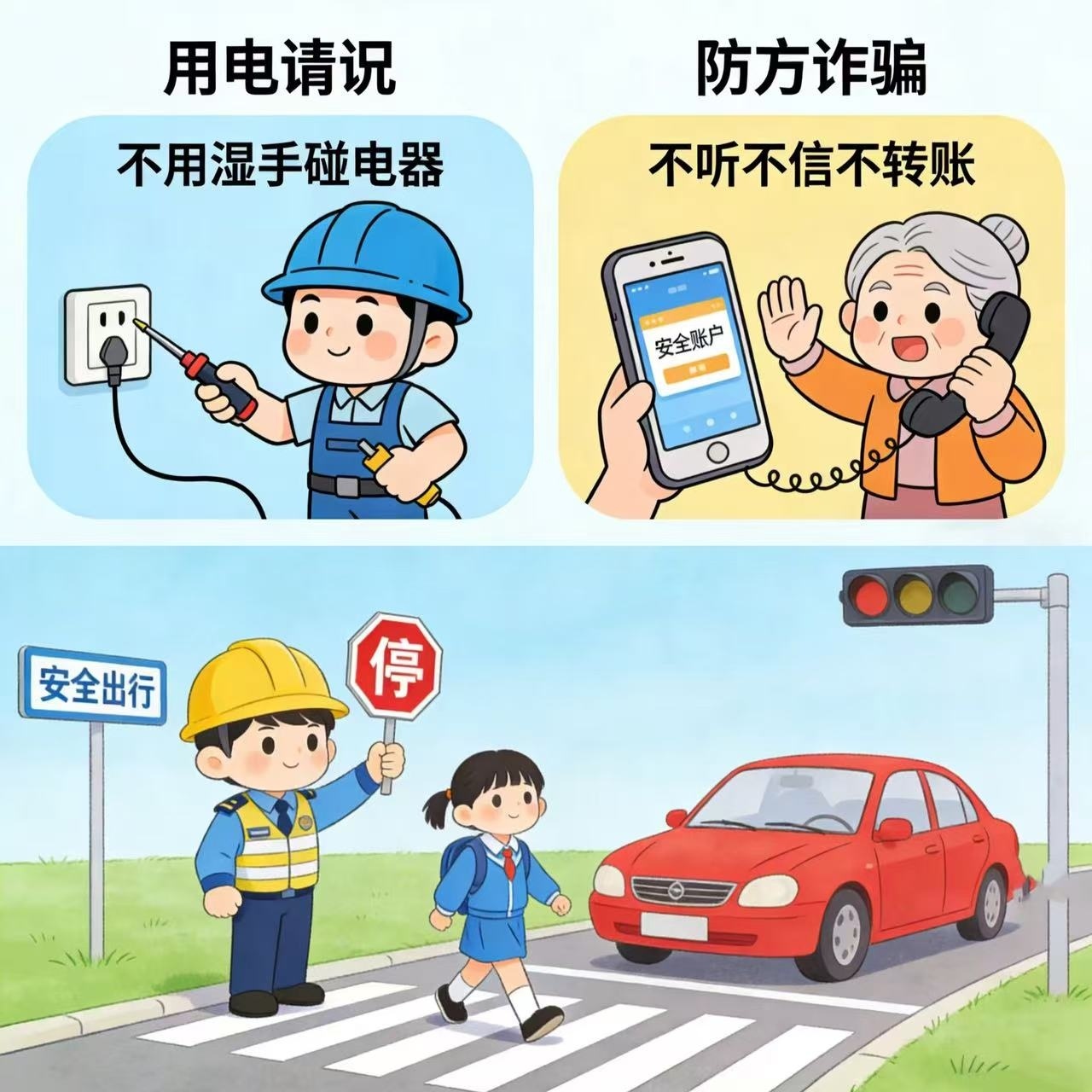 注意交通安全,用电常识,谨防诈骗