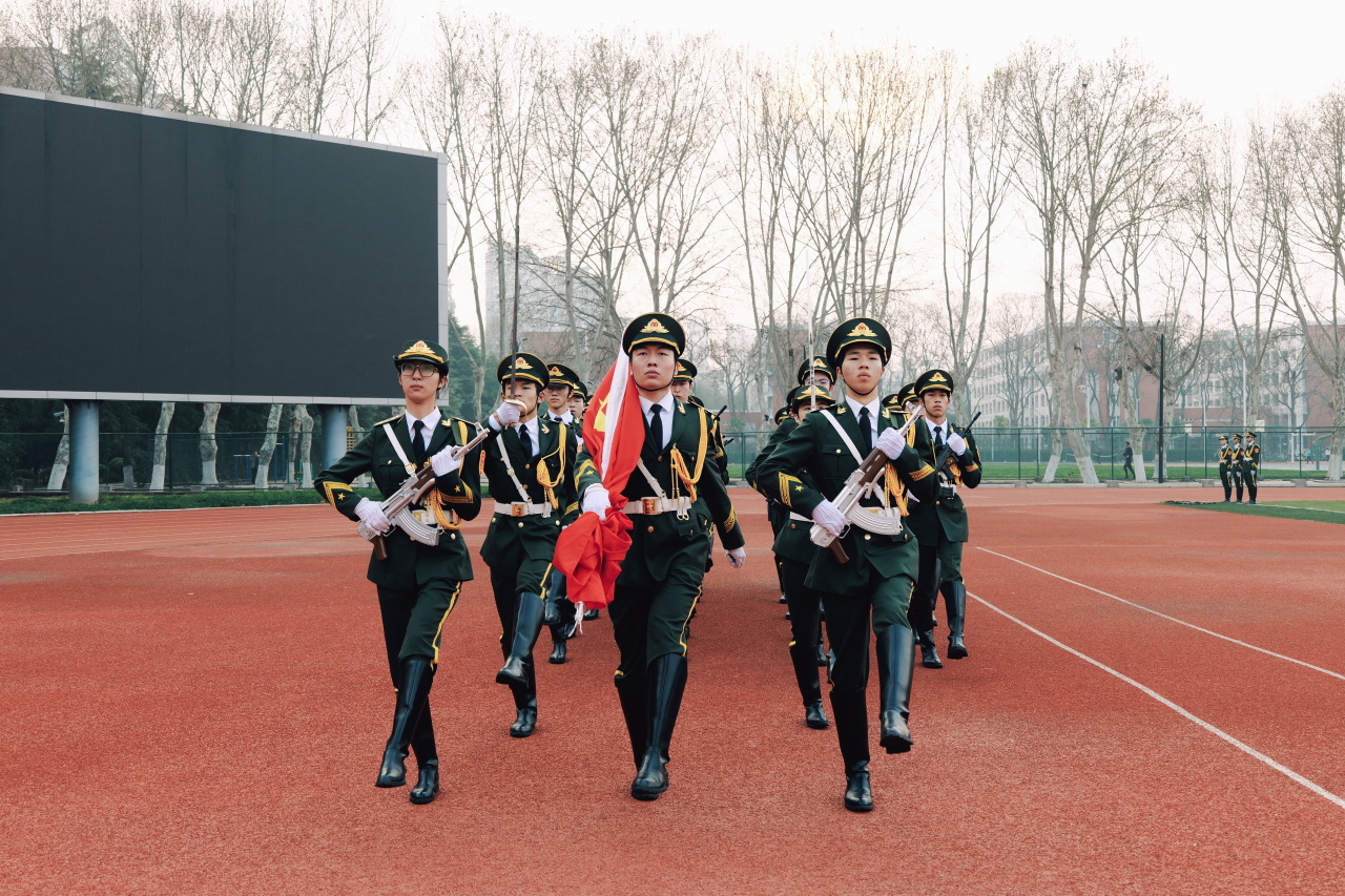 清晨的曙光为校园镀上金边,国旗护卫队迈着铿锵坚定的步伐,护卫着五星红旗庄严走向升旗台。激昂的国歌奏响,鲜艳的旗帜在晨风中冉冉升起,迎风猎猎。全体师生庄严肃立,目光炽热地追随那抹不断攀升的鲜红,嘹亮的歌声在广场上汇聚回荡,每一张脸庞都写满对祖国深沉的热爱与崭新的憧憬。