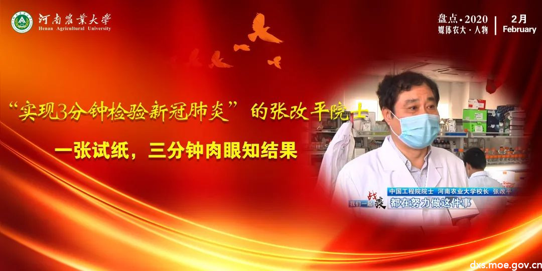 新冠肺炎疫情暴发以来,张改平带领团队,集中河南农业大学、郑州大学和河南省农业科学院动物免疫学重点实验室等优势资源,牵头成立院士应急科研攻关团队,第一时间启动了新型冠状病毒疫苗和检测技术研究工作,开展建立新型冠状病毒分子检测和抗体检测方法、新概念疫苗研发、病原溯源等工作,研发四种新冠肺炎检测试剂,新冠疫苗研发进入量产前的临床准备阶段。