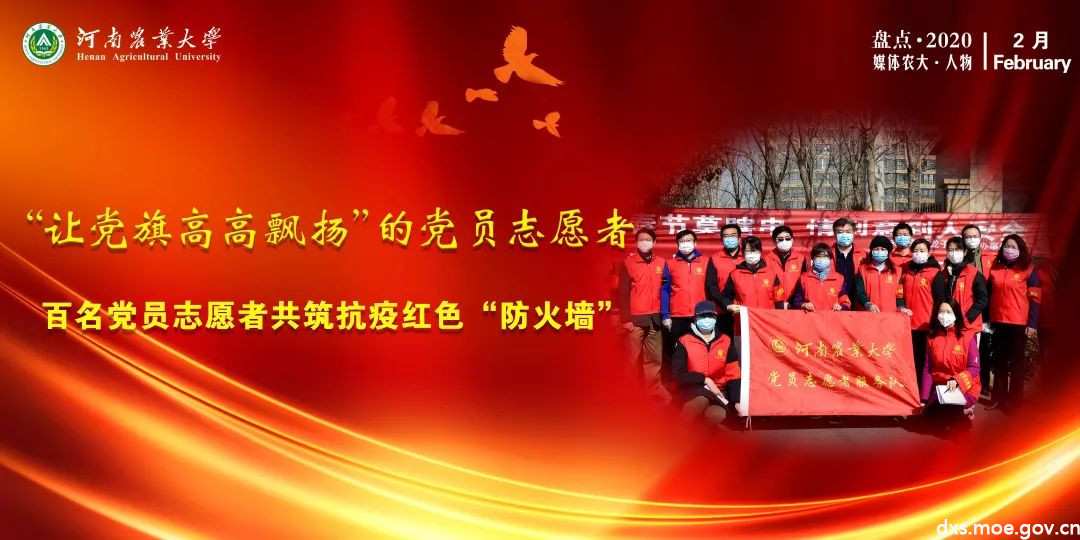 众志成城,抗击疫情,志愿服务,党员先行。在疫情防控阻击战中,河南农业大学百名党员志愿者争当先锋,勇作表率,以高度的责任感和紧迫感,在抗击疫情一线践行初心使命,发挥先锋模范作用,弘扬志愿者服务精神,为打赢疫情阻击战建立防控“安全网”,筑牢红色“防火墙”,全力打赢这场没有硝烟的健康保卫战。