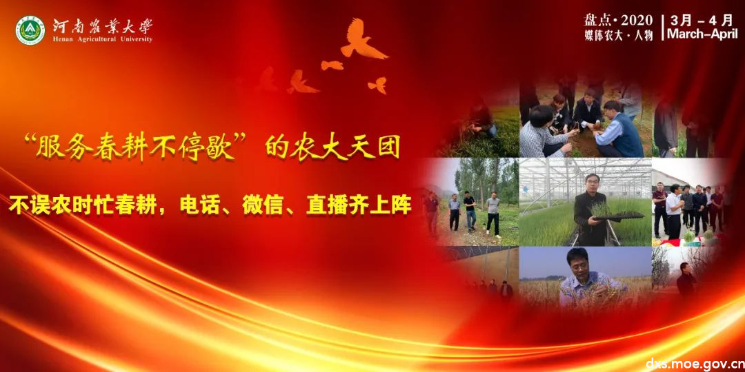 一份农业专家的名单在网上广为流传,被称为“农大天团”,受到农民群众、基层农技推广机构、农业企业、农业新型经营主体等的热追。这份农业生产领域名副其实的“天团”名单由河南农业大学主动面向社会发布,包含了小麦生产、畜牧生产、果蔬生产、中药材种植、植物保护、植物营养等14个领域的40名学术“大牛”,名单上清楚标明了40名专家的专业特长、联系方式,鼓励大家随时咨询。各位专家纷纷利用电话、短信、微信、公众号、远程视频及其他直播平台等方式开展技术指导、技术培训、专家讲座,为广大农户的农业生产提供及时、有效的服务。自疫情暴发以来,河南农业大学在做好防控工作基础上,充分发挥自身优势和特色,抓住春季农业生产关键时期,组织专家通过多种方式指导农业生产,为“三农”工作提供有力人才和科技支撑。