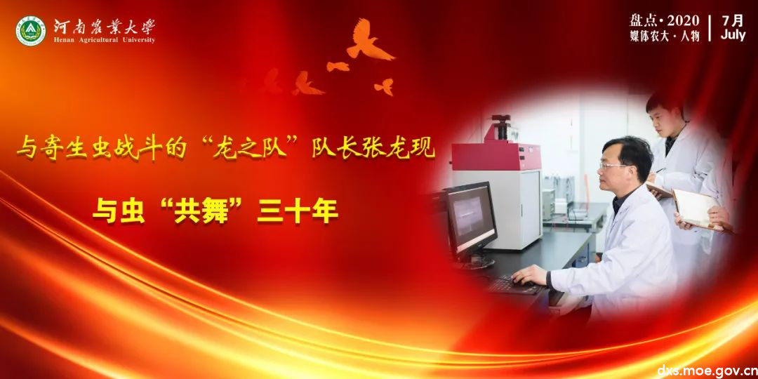 张龙现,河南农业大学动物医学院教授,博士生导师。他与虫“共舞”近三十年,从“211”起步(2个人、1台离心机、1万元经费),“5+2”“白+黑”是他的生活常态。他带出了一批又一批学生,带出了一个优秀的团队,获评首批全国高校黄大年式教师团队。正如张龙现所说:“坚守在实验室,抵得住诱惑,耐得住寂寞,就是党员的一个先锋信念,一个信仰在支撑着你,党员的标准就应该是最高标准。”