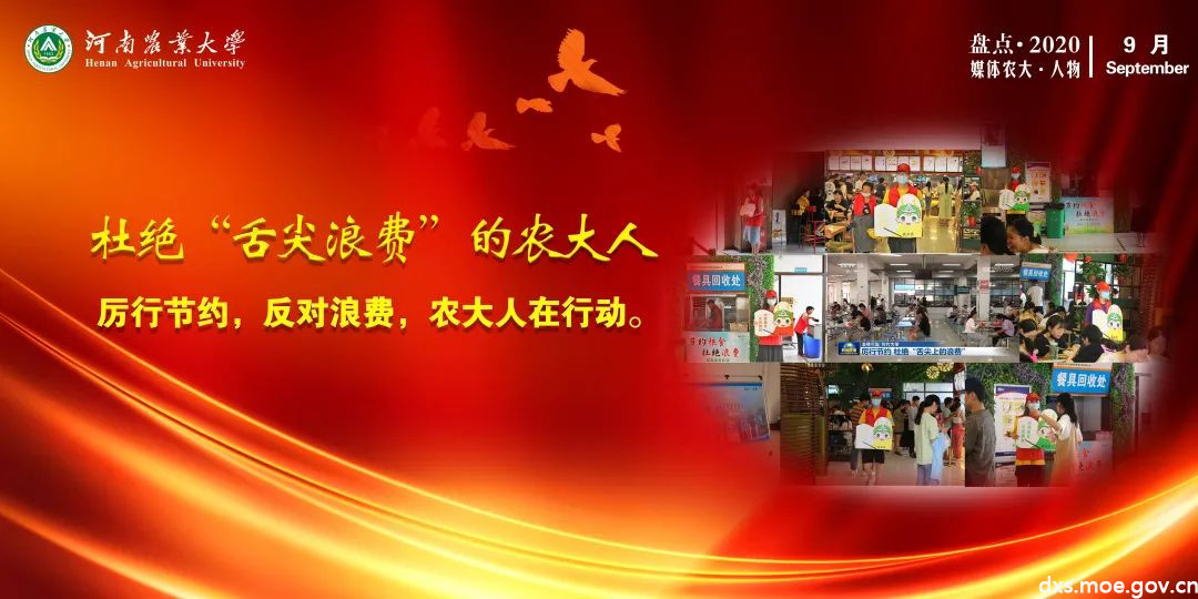 厉行节约、反对浪费。农大人积极响应总书记的号召,通过在食堂制作摆放文明用餐宣传板,悬挂宣传条幅,开展文明餐桌教育和引导广大师生让美味佳肴不再成为剩饭剩菜,杜绝“舌尖上的浪费”。学校提供“自选餐”、“拼盘菜”、“大小份饭”、“大小馒头”等品种,提倡“按需所取,按需所买”,逐步取消份菜供应模式,让师生自助选餐,用量自定,开展光盘奖励活动,凭“光盘”奖励水果,凭“光盘”可获得积分卡,凭积分卡可获得相应的饮料或餐品,推行“公筷公勺”,减少使用食品袋、不使用一次性餐具。