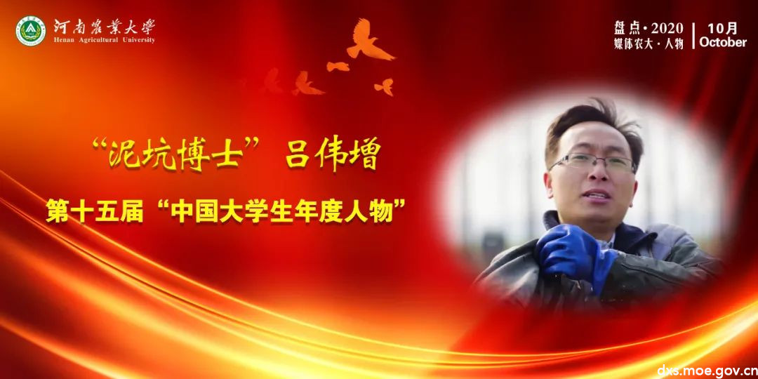 “第十五届中国大学生年度人物”获得者,通过种植莲藕带领群众致富、被亲切誉为“泥坑博士”的我校农学院博士研究生吕伟增,是本届唯一上榜的河南大学生,也是我校大学生时隔九年再次摘得此项殊荣。多年来,他扎实学习钻研作物育种、作物栽培、植物生理学等专业知识。他注重理论联系实际,利用暑假兼职农资销售等工作,走进田地识虫草,深入大棚辨病害,在农业生产一线学技术长本领。他善于总结提升,自觉将理论知识与农民种植管理经验结合,逐渐形成了具有自己特色的农业生产技术理论体系。他积极参与脱贫攻坚,每年帮助农户实现亩产年增收超600万元。他的事迹为大家树立了学农爱农的榜样,让更多的人了解农业,支持农业,投身于农业。