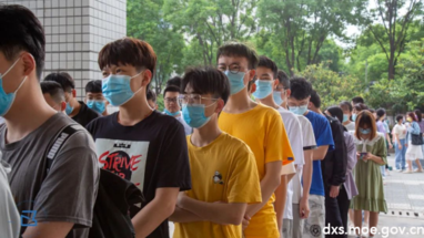 早上九点半,师生们已经戴好口罩在体育馆门口等候接种,在志愿者的引导下,师生们陆续接种新冠疫苗。