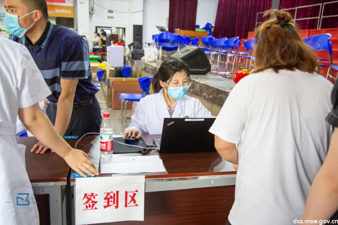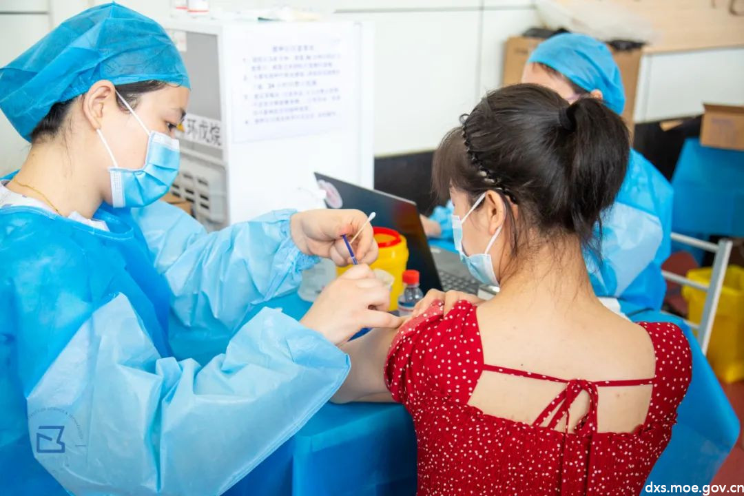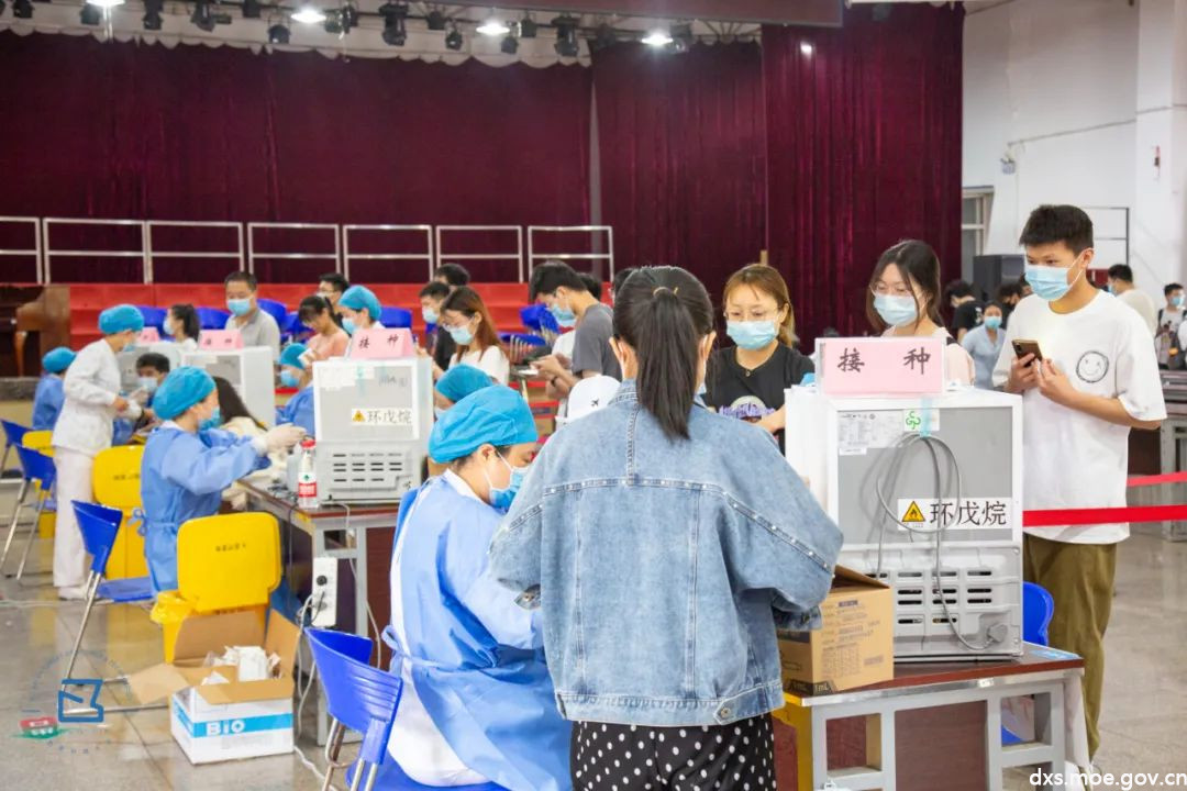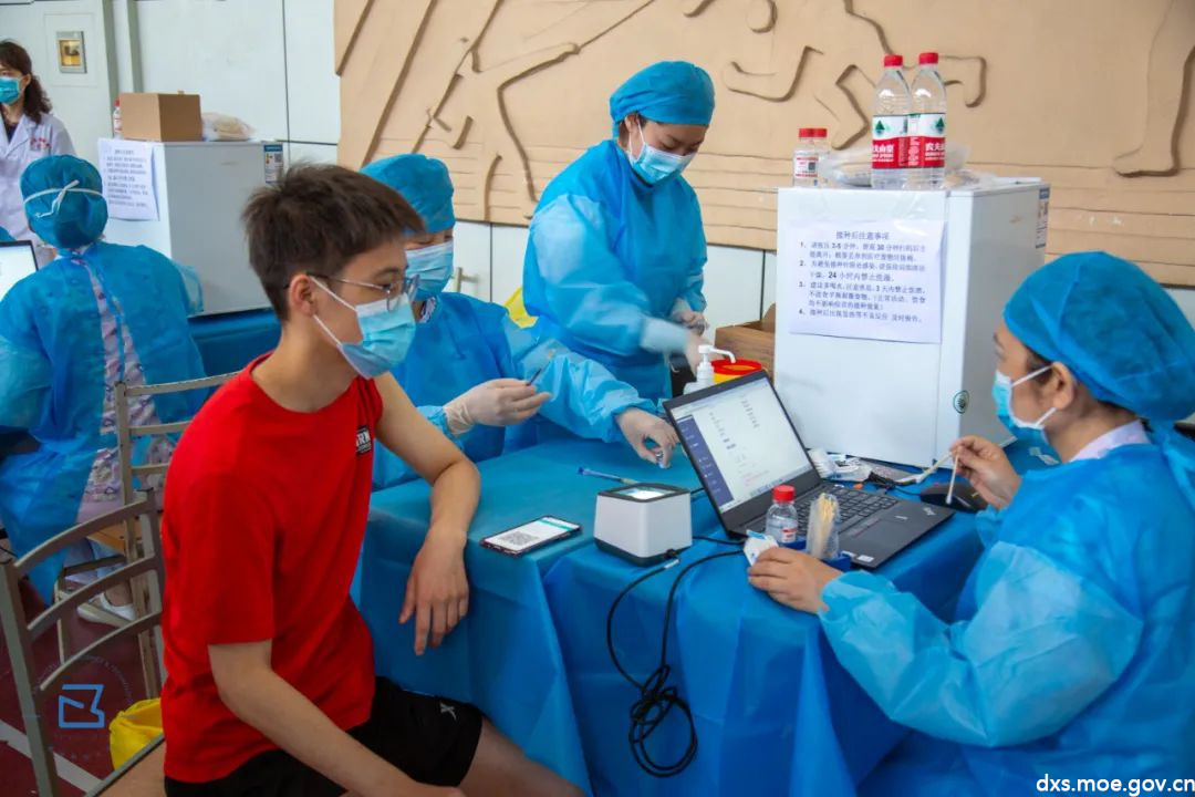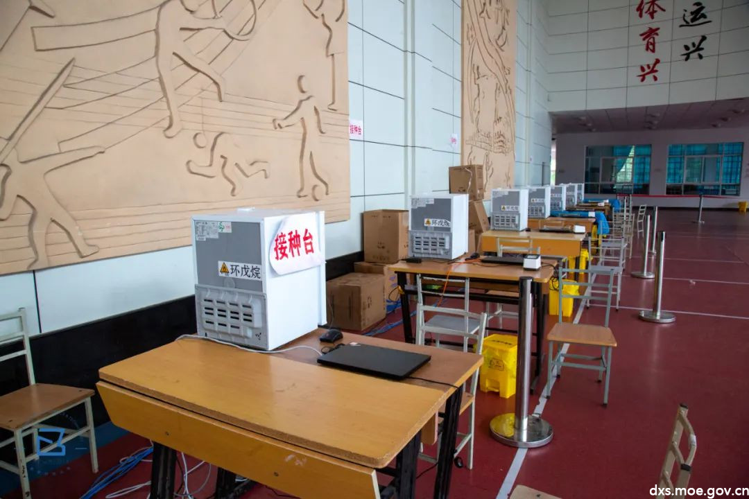接种工作分别在骊山校园体育馆和第二俱乐部开展,每个场地负责完成3000人的接种工作,一天接种完。