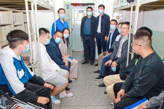 在21号研究生宿舍楼,谢树青和同学们亲切交流,他希望同学们尽快适应学校的学习生活,增强学农、爱农、强农的信心,扎根边疆,奉献边疆,在大美新疆播撒青春与风采。