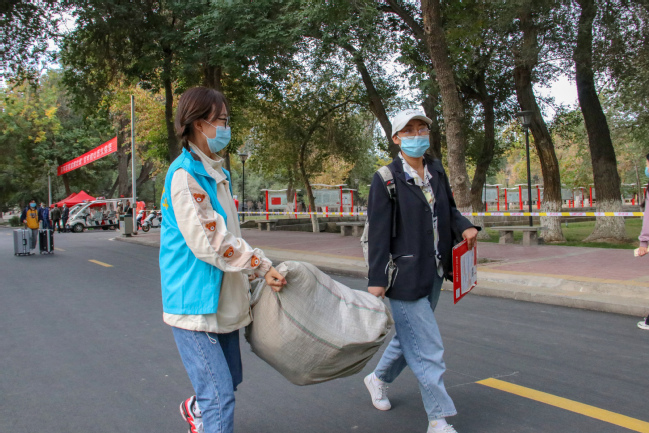 深秋的新疆农业大学美丽且生机勃勃,来自全国各地的2021级新生陆续来校报到。9月23日,校党委书记谢树青带队检查指导迎新工作,亲切看望2021级新生,并慰问现场工作人员和学生志愿者。