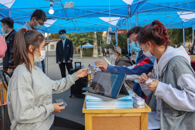 “进校的第一眼就被美丽的校园和大片的绿植所吸引,热情的学长学姐接过行李,帮助我完成了所有的入学信息,最让我惊喜不已的是抽取了属于我的第一份入学盲盒礼物。”数理学院数学2102班的麦地娜·艾买尔说。