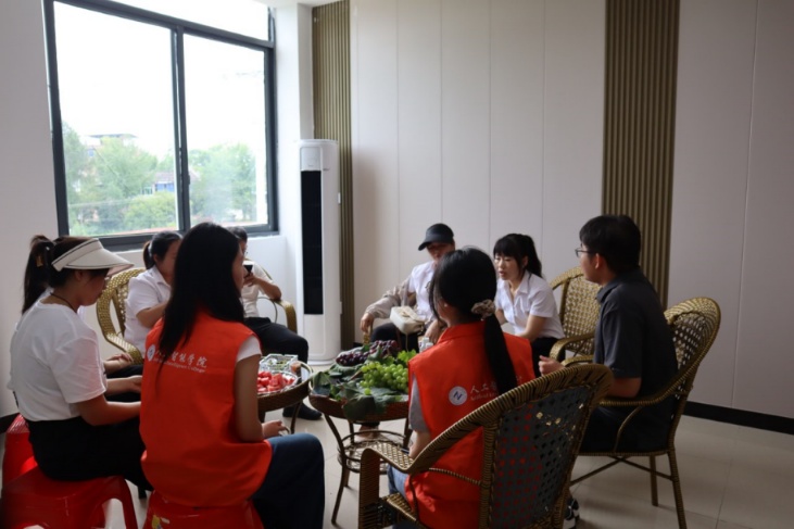 图为实践团成员与马灌镇电子商务中心村干部讨论交流。周嫒林 供图
