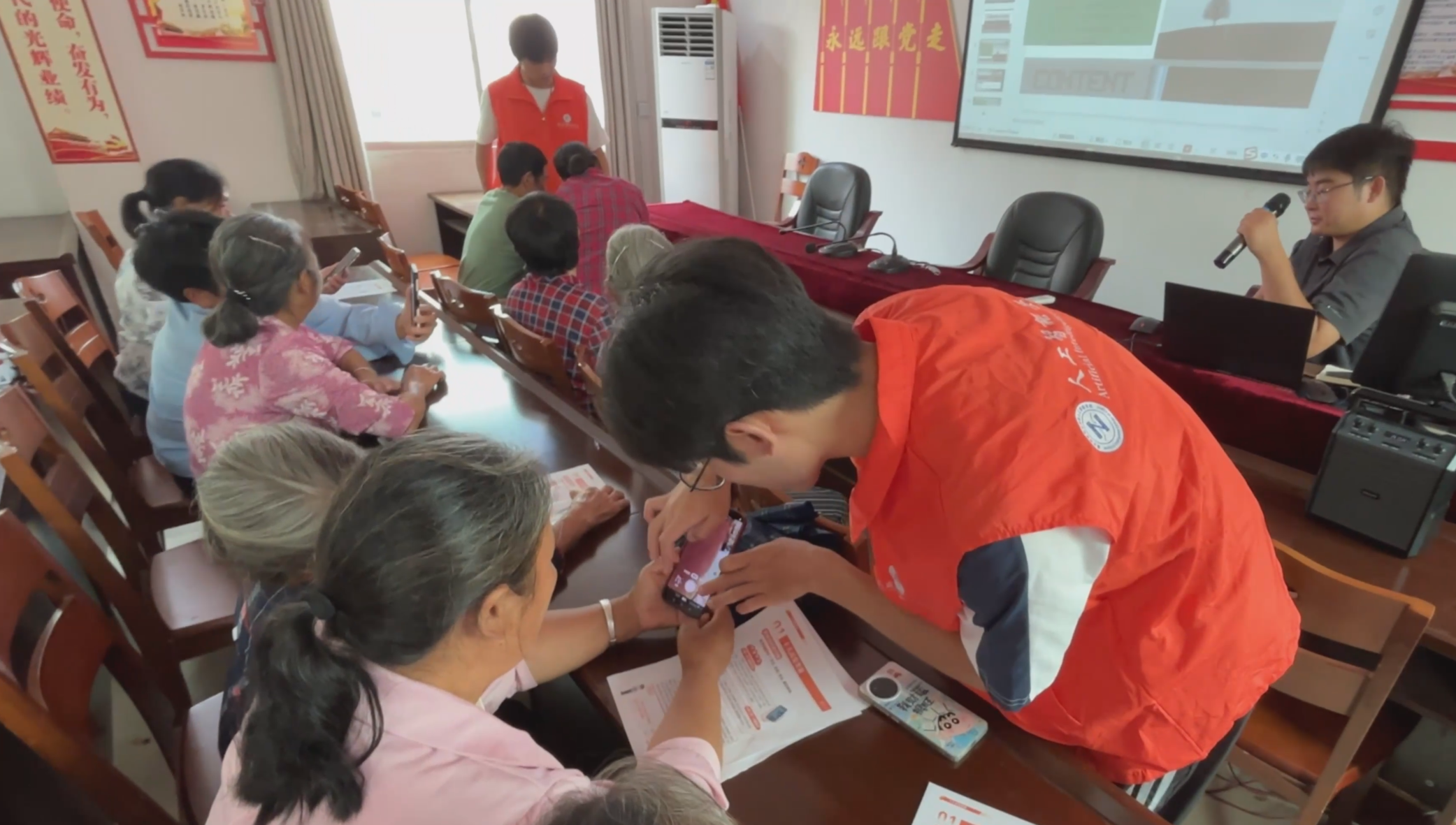 在拔山镇八德村,实践团联合忠县农业农村委员会开展两场专题宣讲,实践团面向村民开展抖音“新农具”使用培训,反诈宣传活动。现场,通过案例分析、现场问答等形式,讲解电信诈骗常见手段及防范措施。针对短视频技能,从构图技巧、剪辑工具使用到平台规则解读做了全面的讲解,村民们纷纷表示:“以前只会发朋友圈,现在知道怎么拍视频卖东西了,还学会了防骗,太实用了!”