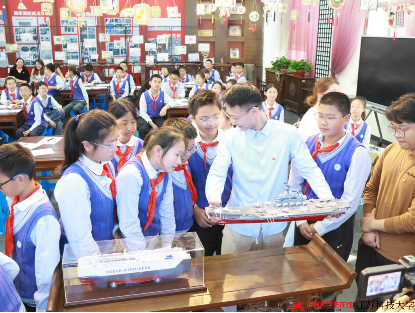 江苏科技大学组织师生党员宣讲团,开展“国安宣传轻骑兵”“红船领航向深蓝”等活动,在校内外构建立体化宣传网络。在西苑食堂广场设立普法宣传站点,通过发放原创设计的《国家安全应知应会》宣传手册,结合“以案说法”形式向学生讲解网络诈骗识别、失密泄密案例等知识,面向全校师生开展宣传教育。同时,学校还组织了校外活动,江科大学子深入京口区实验小学,开展“红船领航向深蓝——海洋强国知识科普”活动。通过红色故事、船模实践、航行竞赛等形式,将海洋强国信念与国家安全意识播撒进孩子们心中,点燃“强国有我,守护海疆”的青春誓言。