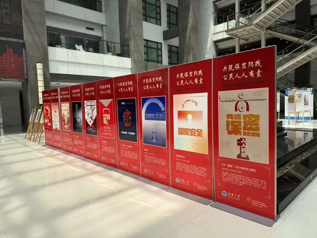 本次作品展中,江南大学设计学院学生党员、发展对象、入党积极分子综合运用多种艺术形式,将总体国家安全观的丰富内涵、实践要求转化为鲜活生动的艺术符号,共征集86件主题海报作品。经遴选,最终精选12件优秀作品集中展出。用青年视角解读国家安全,用艺术语言诠释使命担当,生动展现新时代江南学子以青春之力守护国家安全的精神风貌。