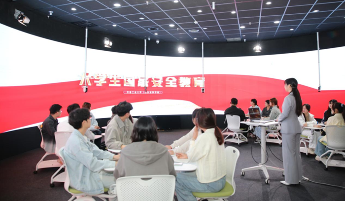 课程采用“沉浸式教学+云端辩论”新模式,通过课堂连线,展示了总体国家安全观的主要内容以及当前国家安全面临的威胁与挑战等,并以《哪吒》电影和大学生主题获奖作品为例,讲述青年学子如何维护国家安全。