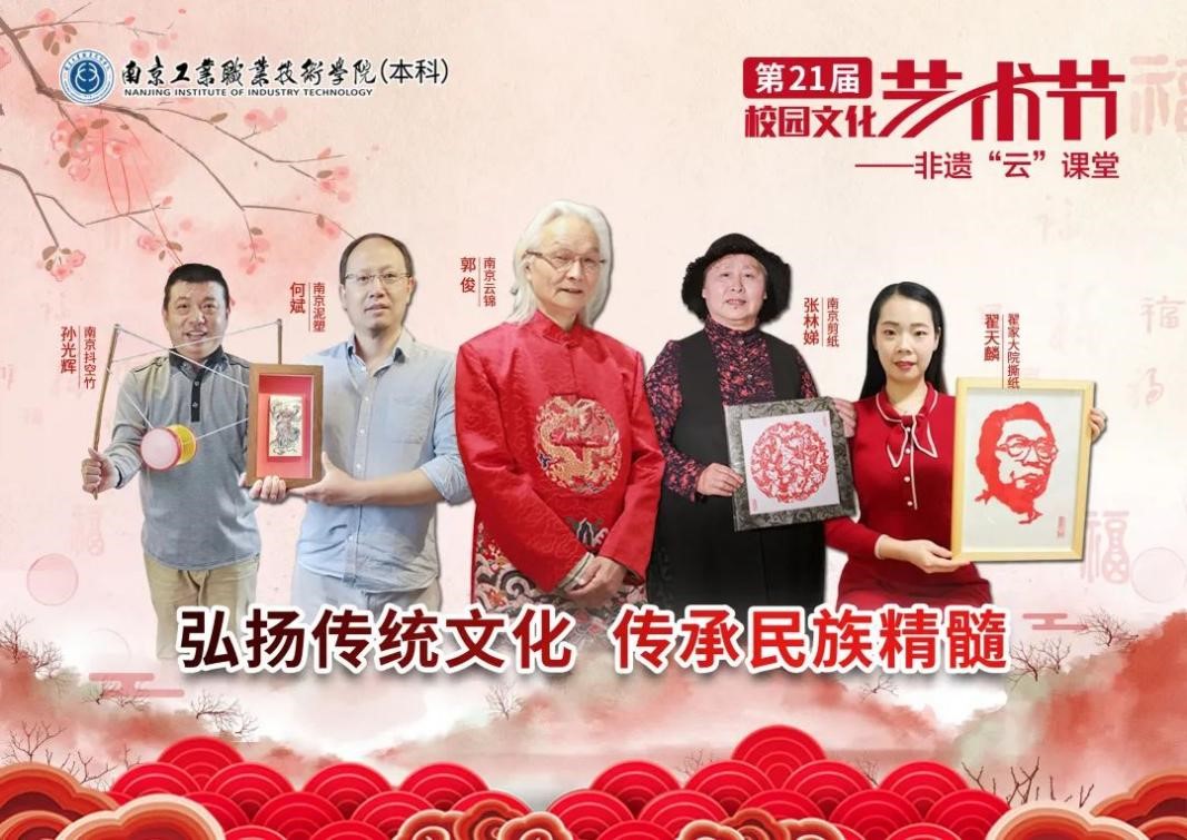 学校依托南京市民俗博物馆优秀传统文化资源,围绕文化强校,做好讲清、挖掘、阐发、宣传,彰显非物质文化遗产的优势,在弘扬传承优秀传统文化中固元气、展特色,进而充分发挥文化引领风尚、凝聚人心、服务群众的独特作用。“非遗文化进校园”作为学校大学生校园文化艺术节的传统品牌活动,一直备受师生好评。2020年根据疫情防控的相关规定,校团委通过B站首次开创非遗“云”课堂,紧密围绕南京特色的非物质文化遗产进行课程研发,邀请国家级非遗大师与新生代非遗传承人在直播间与青年大学生共同畅谈新时期如何传承和弘扬中华优秀传统文化。