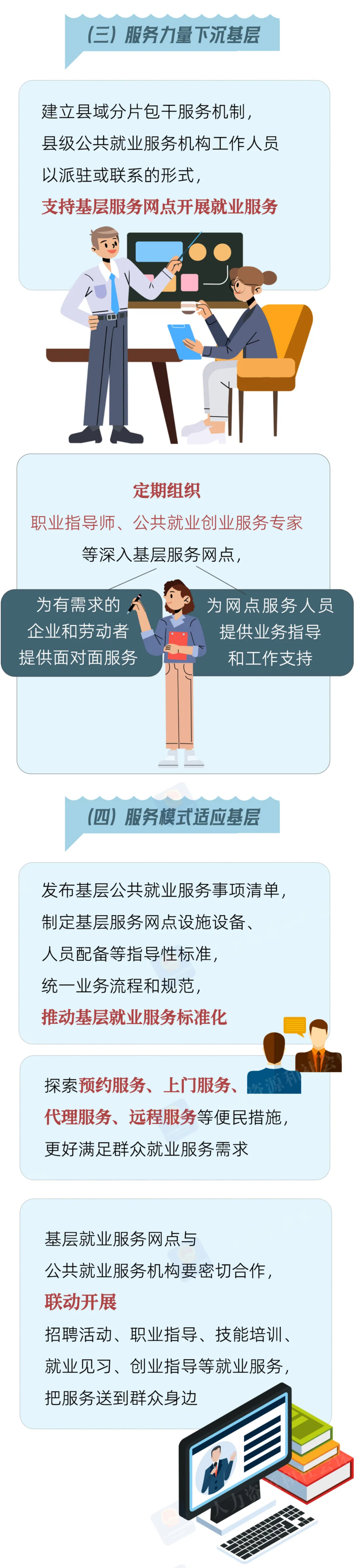 近日,人力资源和社会保障部、财政部联合印发《关于推动公共就业服务下沉基层的意见》,力争用2至3年时间,打造一批具有示范引领性的基层就业服务网点,加快形成上下贯通、业务联通、数据融通的基层就业服务格局,增强公共就业服务的均衡性和可及性。