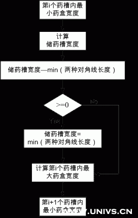 1.为避免推送药盒时出现并排重叠、侧翻和水平旋转的情况,分析出储药槽的宽度必须小于其中最小药盒宽度的2倍,也必须小于其中药盒的最小长宽对角线长度和最小高宽对角线长度;