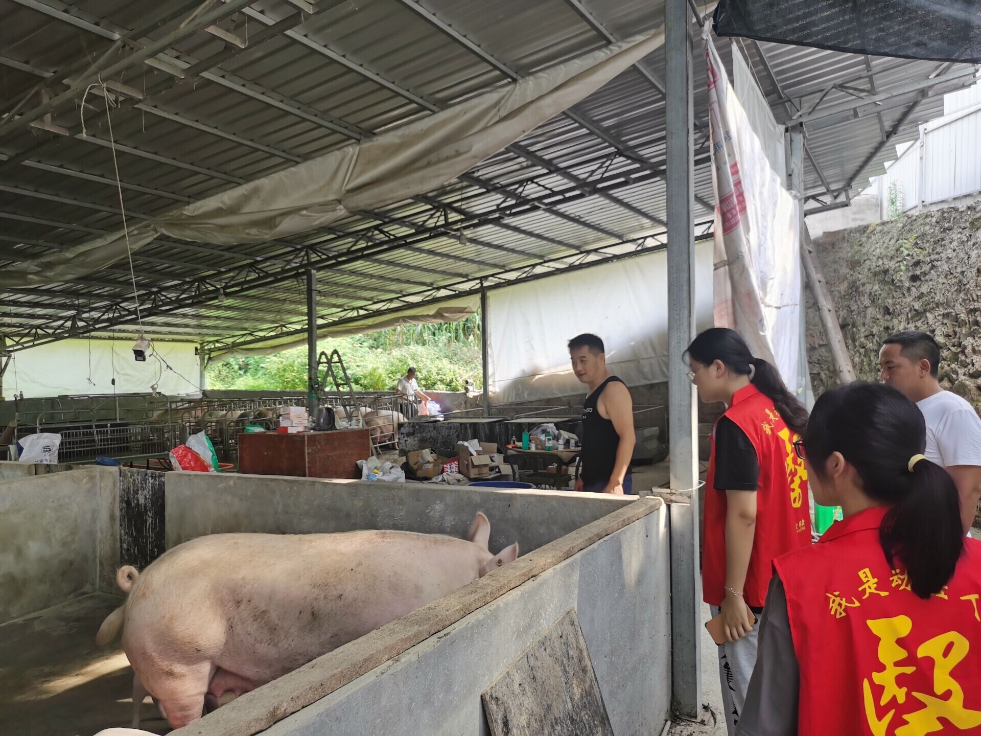 图为马边彝族自治县下溪镇兽医站程俊铭医生(左一)与团队成员走访石龙门村养殖家庭农场。通讯员 邱咏康 摄