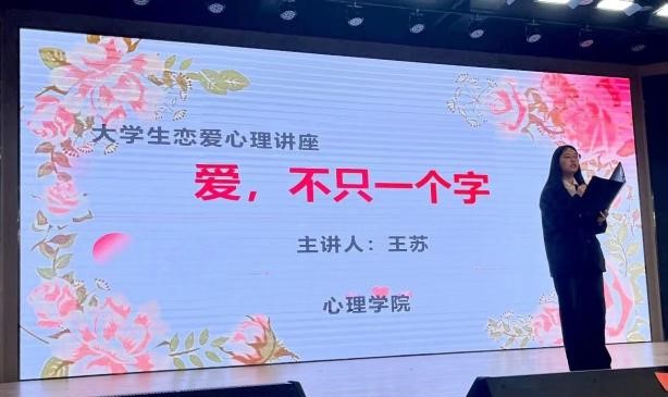 五月中旬,学院以一场别开生面的“恋爱心理主题讲座”开启了今年“心向暖阳 逐光而行”5·25心理文化节。来自各学院的一百余名同学参加了讲座,现场气氛活泼热烈、互动频繁,同学们了解到了恋爱中的心理机制,知道了如何保持健康的恋爱心理状态。