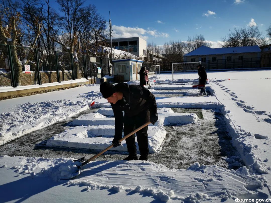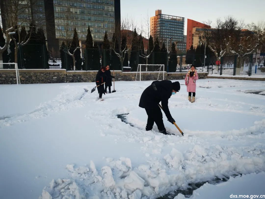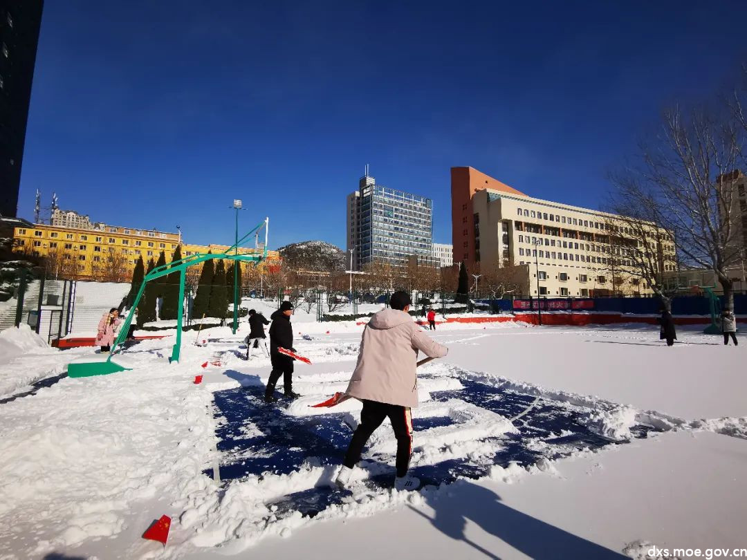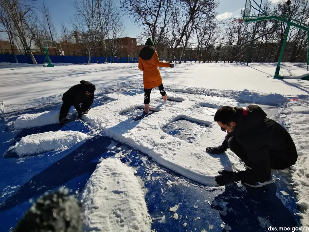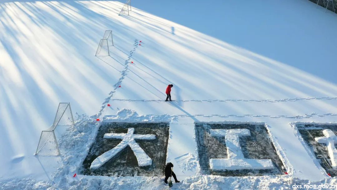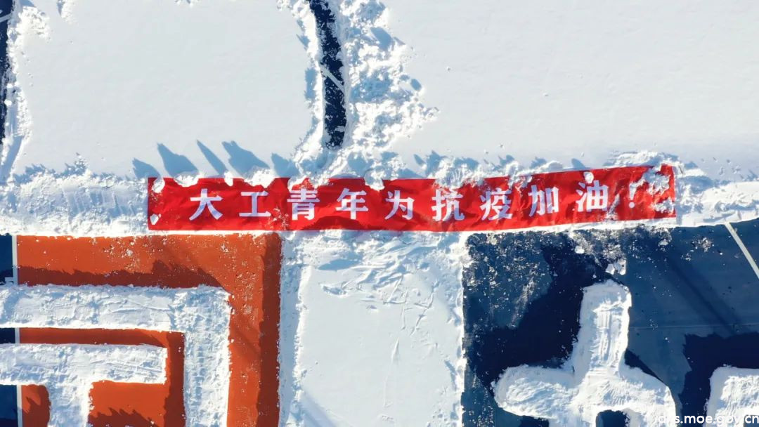 近日,大连迎来了新年的第一场大雪,一时间校园银装素裹、美不胜收。1月9日正值周末,在校团委、学生会、建艺学院、手绘社团和体育场馆中心的共同努力下,青年师生们一道共历时12个小时雪地作画,为中国抗疫点赞,为大连、大工抗疫加油!