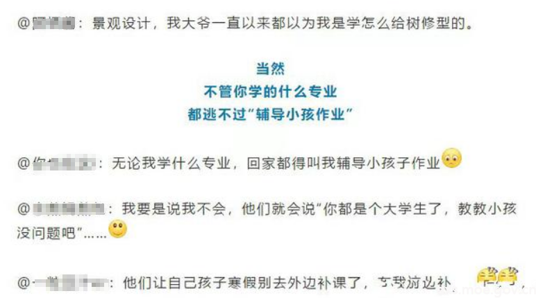 对于这个问题,很多同学表示:求放过!虽然自己已经是大学生了,但真的不是什么都会,在辅导作业方面,很多同学也没有经验,小孩子更是让人难以招架。相信很多同学一听到要辅导作业,估计心里都会咯噔一下。如果能进行辅导,就积极去做就好。如果不能辅导or没有辅导经验,怕做不好,解释清楚就好,提前说明自己的辅导能力和寒假计划,进行委婉拒绝。