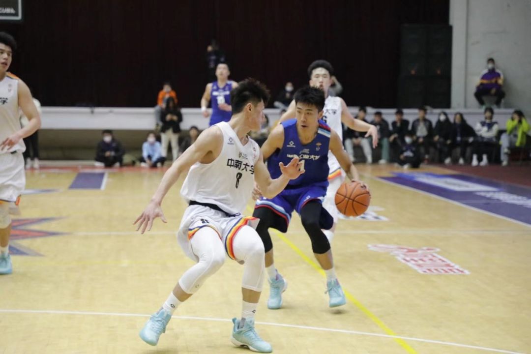 比赛开场之后,我校先声夺人,利用防守反击和外线更火热的手感,完美开局,进攻端接连命中投篮,防守端则造成中南大学球员连连失误,第二节一度领先对手10分之多。上半场快结束时,中南大学王牌球员黎璋霖找回状态,连连得分,将两队分差缩小到3分。