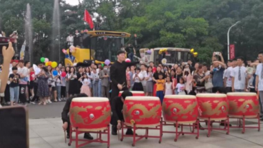 激昂的鼓声骤然响起,鼓手们不时变换着击鼓的手势,鼓声时而急如万马奔腾,时而缓如母亲呢喃细语,与现场师生们的欢呼声汇成了一曲交响。