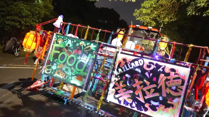 园艺林学学院则以“上海青”和柑橘雕刻成的花瓣模型与鲜花一起,将车头装点成“园艺林学学院”字样,车身与车轮上,春分、夏至、秋分、冬至四个节气的花果图案与精美的插画、各具特色的印章错落有致地张贴着,体现了师生们的团结奋进及学院为持续创造美好生活而付出的努力。