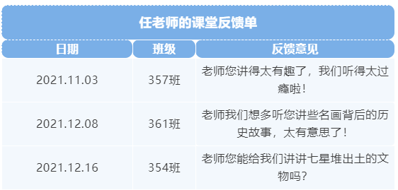 这些课堂反馈对任凤舞来说并不仅仅是教学所带来的成就感和满足感,更是对她的鞭策和鼓励。课下与同事交流时她常常说:“我要加油啊!学生对艺术的热爱程度和涉及面远远超出了我的想象。”从梵高到毕加索,再到安藤忠雄的光之教堂,孩子们可以和她侃侃而谈一节课……因此,她常常提醒自己,要不断提高自身的能力和知识深度,才能够输出更有价值的知识教授给学生。