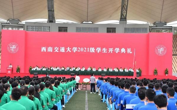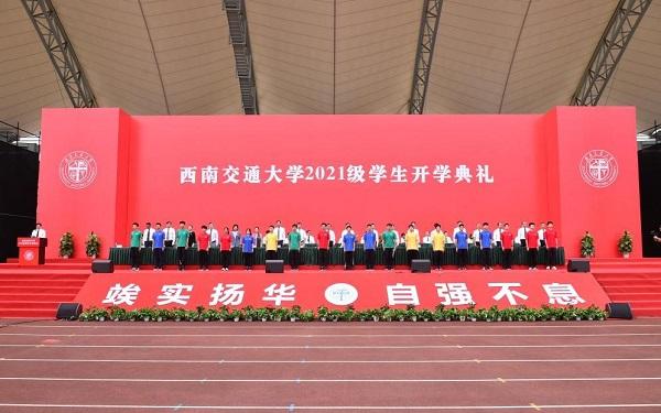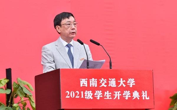 9月5日上午,西南交通大学2021级学生开学典礼于犀浦校区北区体育场、九里校区詹天佑体育馆、九里校区大学生会堂、九里校区国际会议厅通过网络连线同步举行。学校党委书记王顺洪,校长杨丹,教育部党建工作联络员石坚,中国科学院院士、美国国家工程院院士翟婉明,在校校领导和各学院(中心、实验室)负责人,学校相关职能部处负责人,教师代表等出席了开学典礼。典礼由学校党委副书记沈火明主持。
