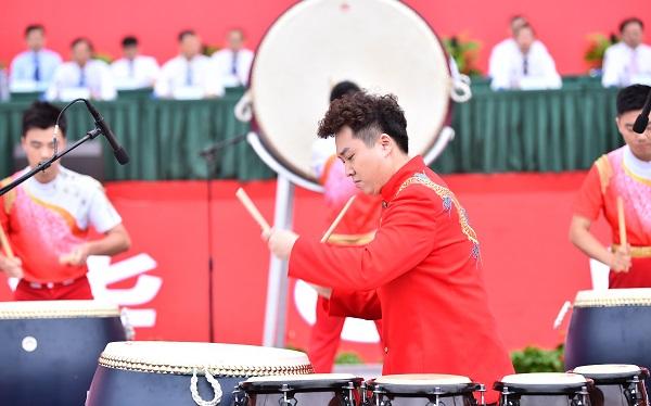 开学典礼开始前,大学生艺术团带来气势磅礴的打击乐表演《鼓舞青春》,现场同学们报以热烈掌声。