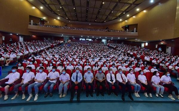 升国旗仪式后,校长杨丹发表了以“迈向新赛道 奋斗新征途”为主题的演讲,他指出,当前世界正经历百年未有之大变局,中国正处于开启全面建设社会主义现代化国家新征程的关键时期,新生们作为中国迈进第二个百年奋斗目标新征程后的首批大学生,正是新赛道上的种子选手,要以踔厉奋发之姿加速奔涌,不负时代重托。杨丹校长同即将开启求学之门的新同学分享了三点思考:其一是识势与立志,要立足中国、放眼全球、心系天下,把个人的理想追求融入国家和民族事业,融入人类进步、社会转型、科技变革、共同富裕的时代浪潮;其二是善学与致新,要继续保持强盛的求知欲和好奇心,勤学、苦学、深学,要在创新中学习、在学习中创新,着力培养批判性思维能力,不断增强发现问题、分析问题、解决问题的能力;其三是固本与健体,要统筹兼顾,坚持全面发展、提高综合素养,强健身体素质、磨砺拼搏意志、感受生命之美。