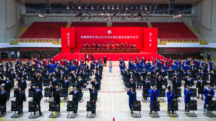 在依依惜别的歌声中,全体校领导起立挥手,目送毕业生们离场向着人生新坐标出发,典礼圆满落幕。鲲鹏展翅,鸿鹄凌云;长风万里,星河可攀。2025届毕业生即将告别母校,心怀新疆师范大学“博学笃行,为人师表”的校训奔赴祖国大江南北。愿你们胸有山海、脚踏实地,在时代的答卷上书写无愧于青春的答案,书写新师人新的璀璨荣光!